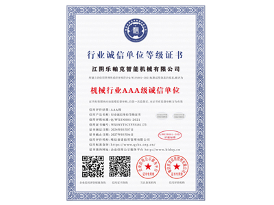機(jī)械行業(yè)AAA級(jí)誠(chéng)信單位